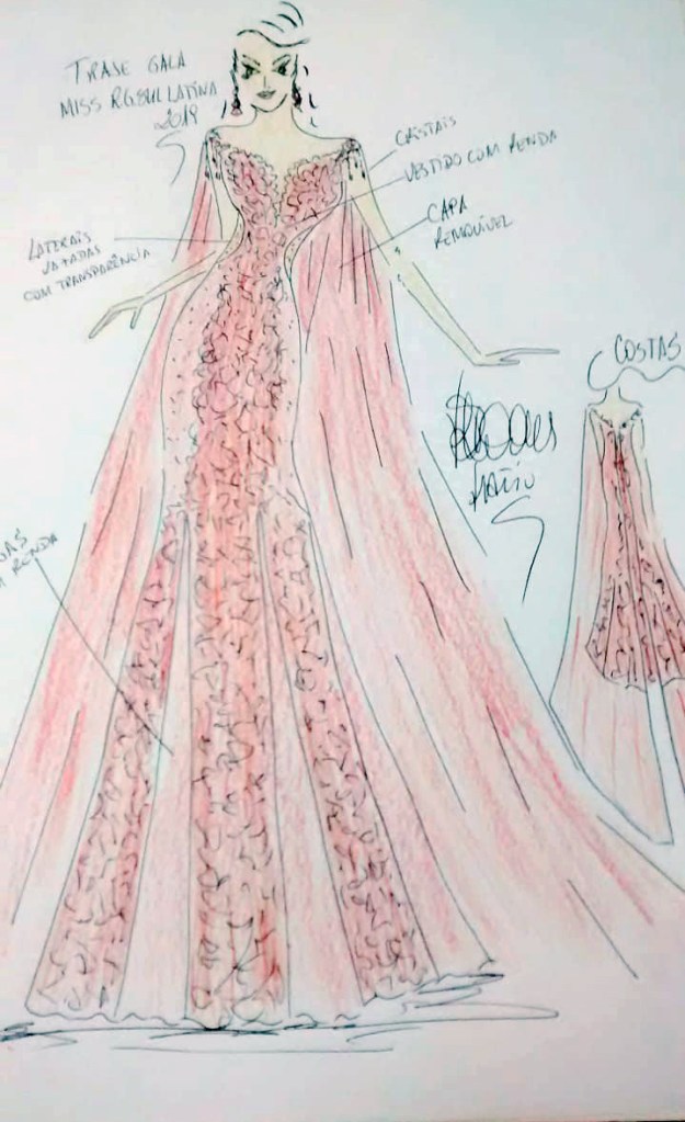 Faltando menos de duas semanas para o embarque de Flávia Tolfo ao Recife (PE), a organização do concurso resolveu apresentar ao público o croqui do vestido que será usado pela gaúcha na disputa do Miss Brasil Latina 2019.